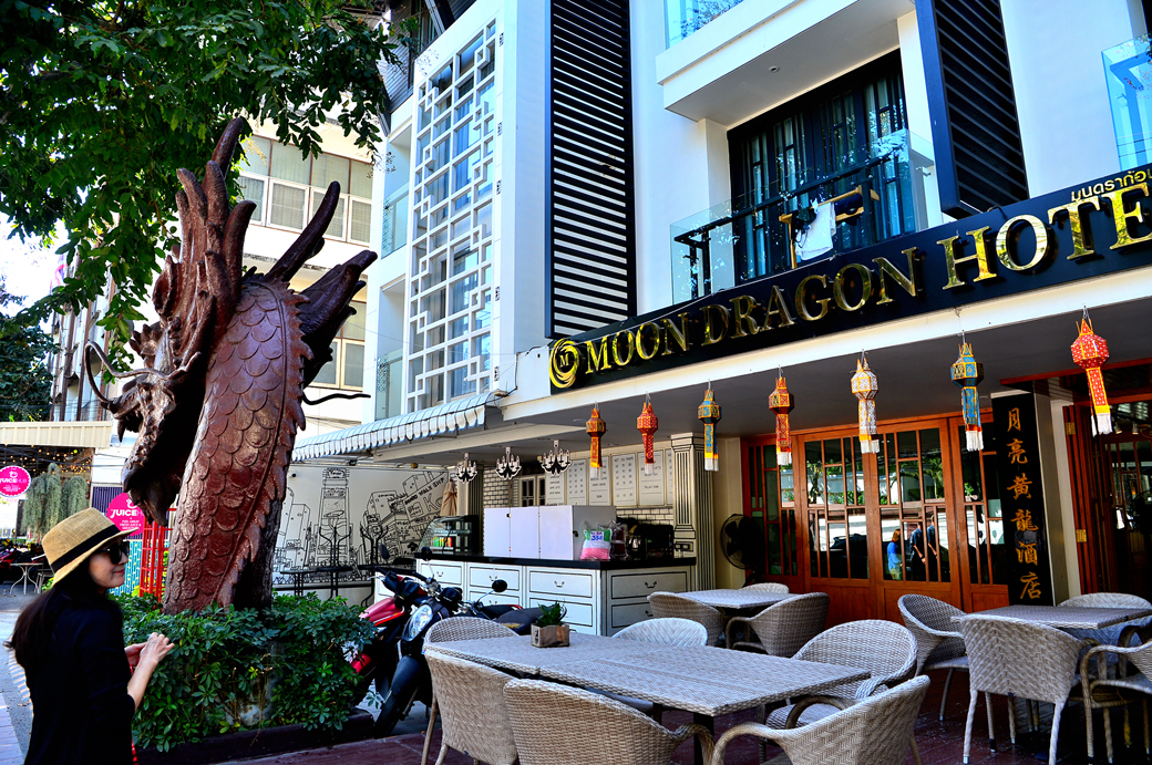 호텔 전면에 거대한 용의 머리를 조형물로 내놓은 이 호텔은 3성급을 표방하고 있다.