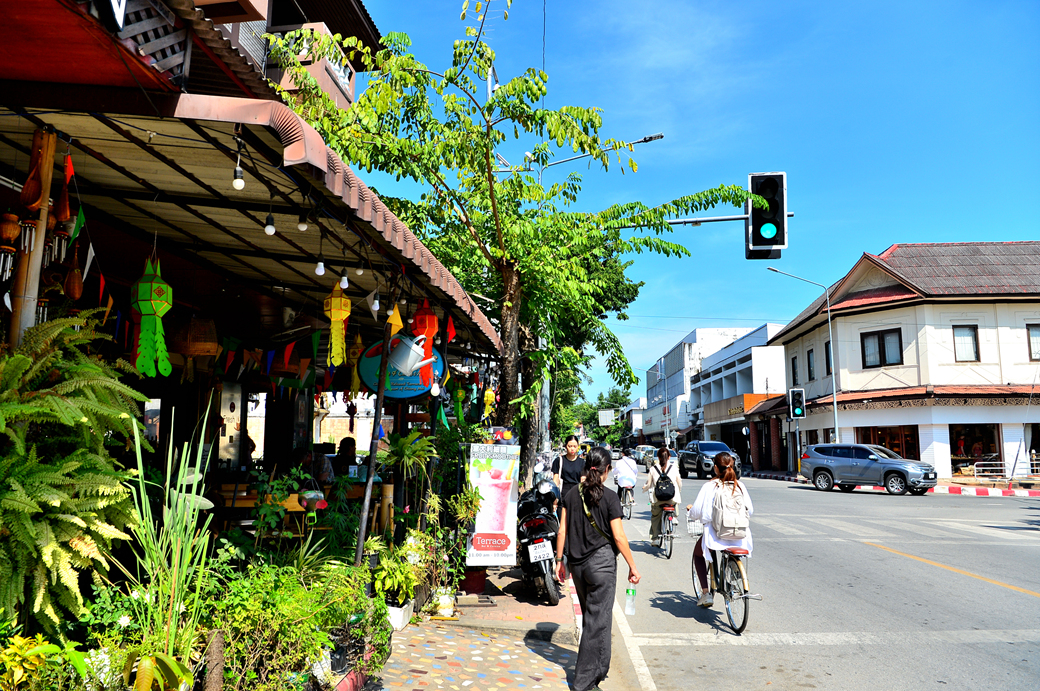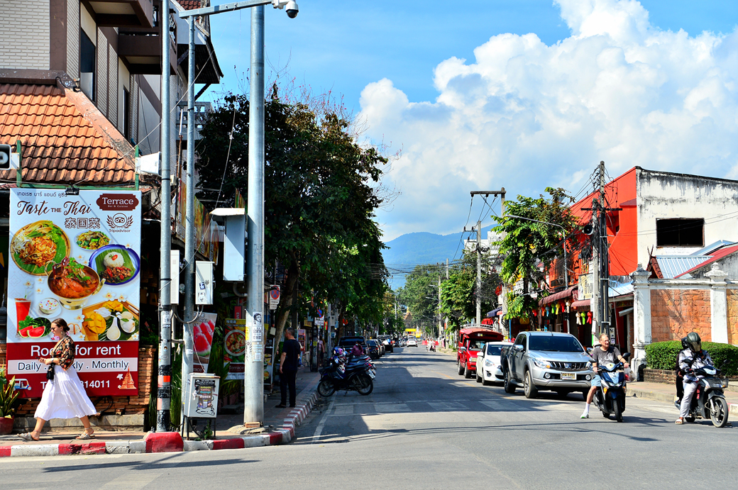 타패 게이트에서부터 이어지는 치앙마이 올드타운의 중심부를 가르는 Rachadamnoen Rd. 의 한 호텔 앞을