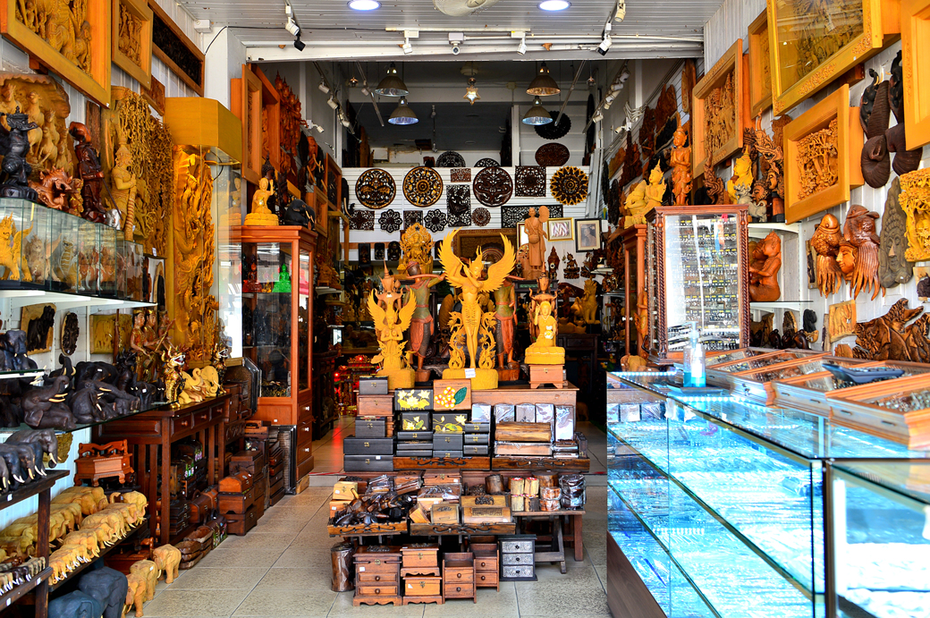 정교하게 만든 목공예 기념품점도 보인다.