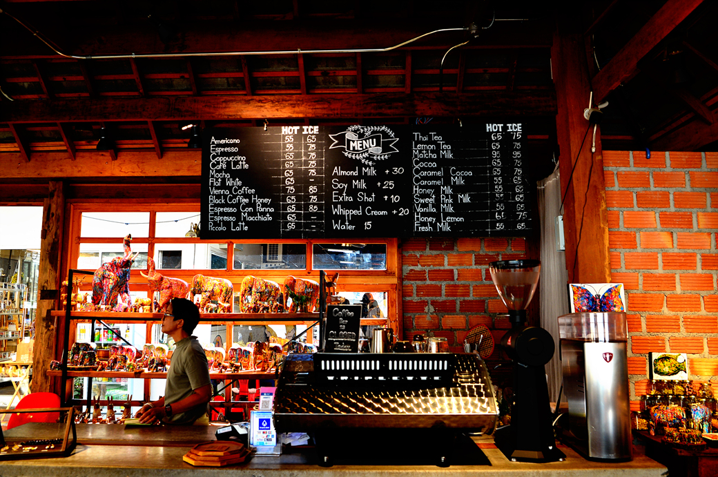 상점가의 입구에 위치한 커피숍을 들어가 보았는데, 기념이 될만한 간단한 목공예품들도 팔고 있었다.