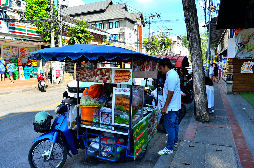 거리의 오픈 키친에서는 서양 여행자들의 모습이 보이고~