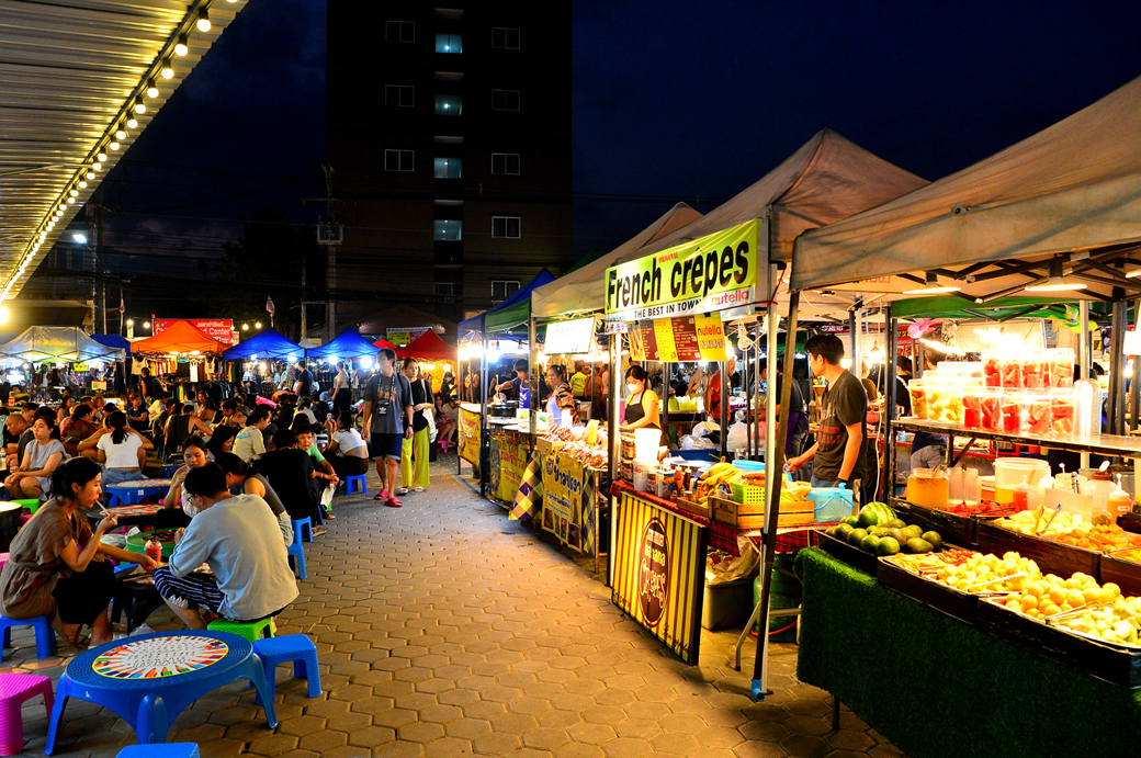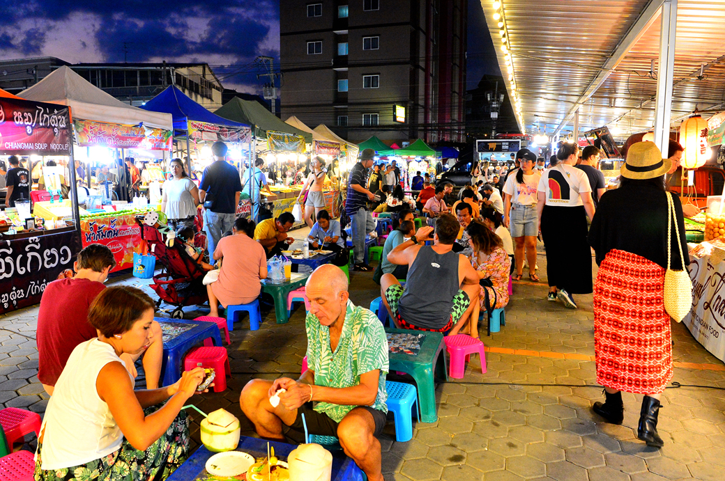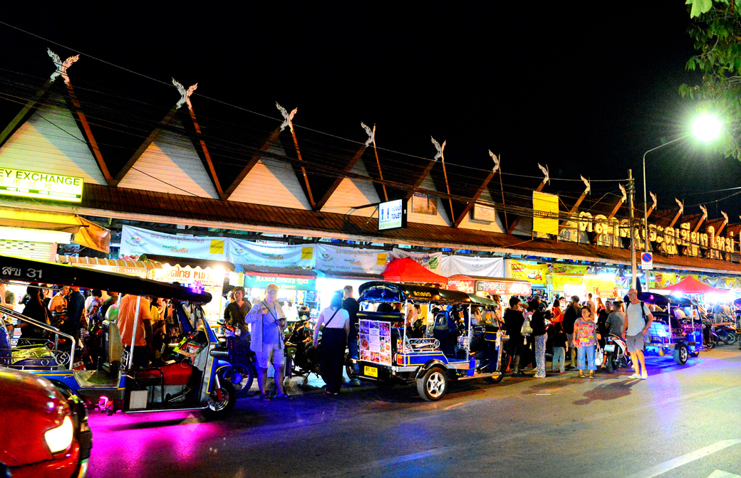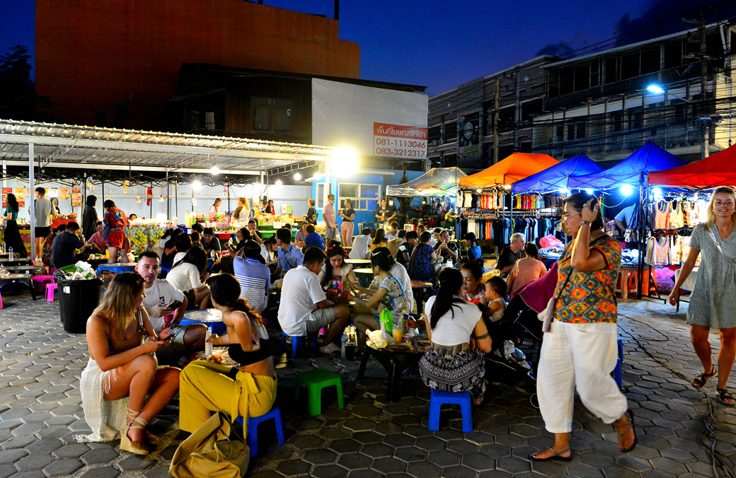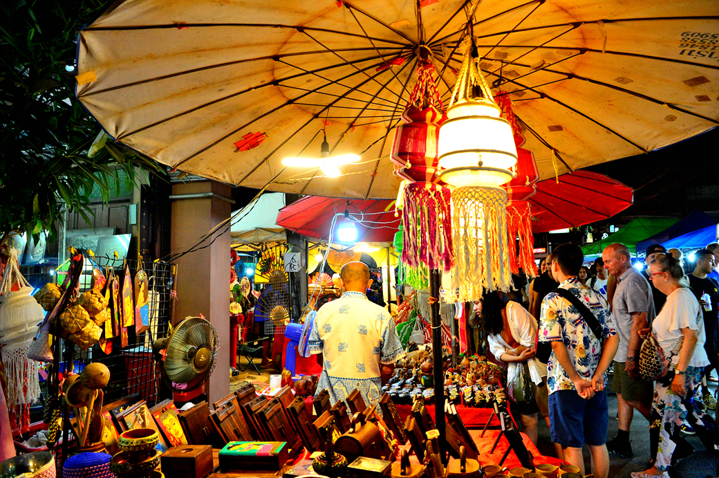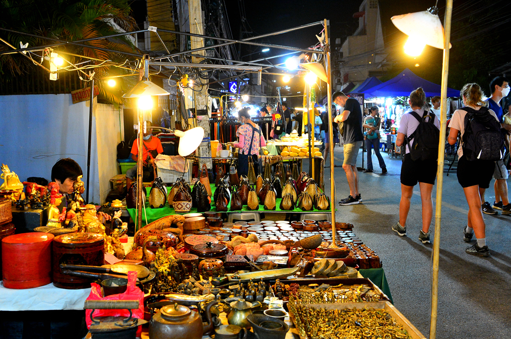치앙마이 올드 시티 밖 남쪽에 위치한 우아라이 로드에서 매주 토요일에 열리는 토요 워킹 스트리트 마켓의 중앙