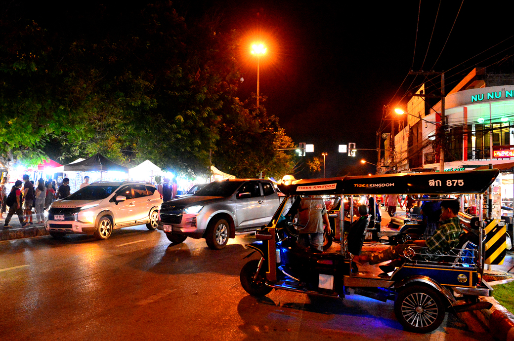 태국의 대표적인 교통수단 툭툭이와 생테우가 보이는 걸 보니 어느덧 토요 스트리트 마켓의 출발점인 우아라이