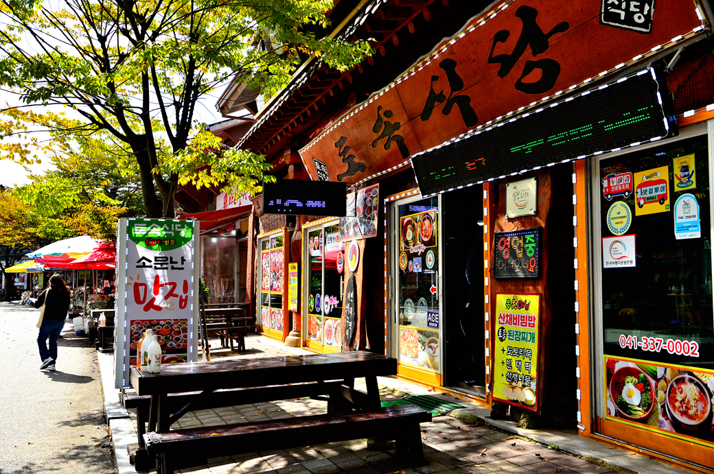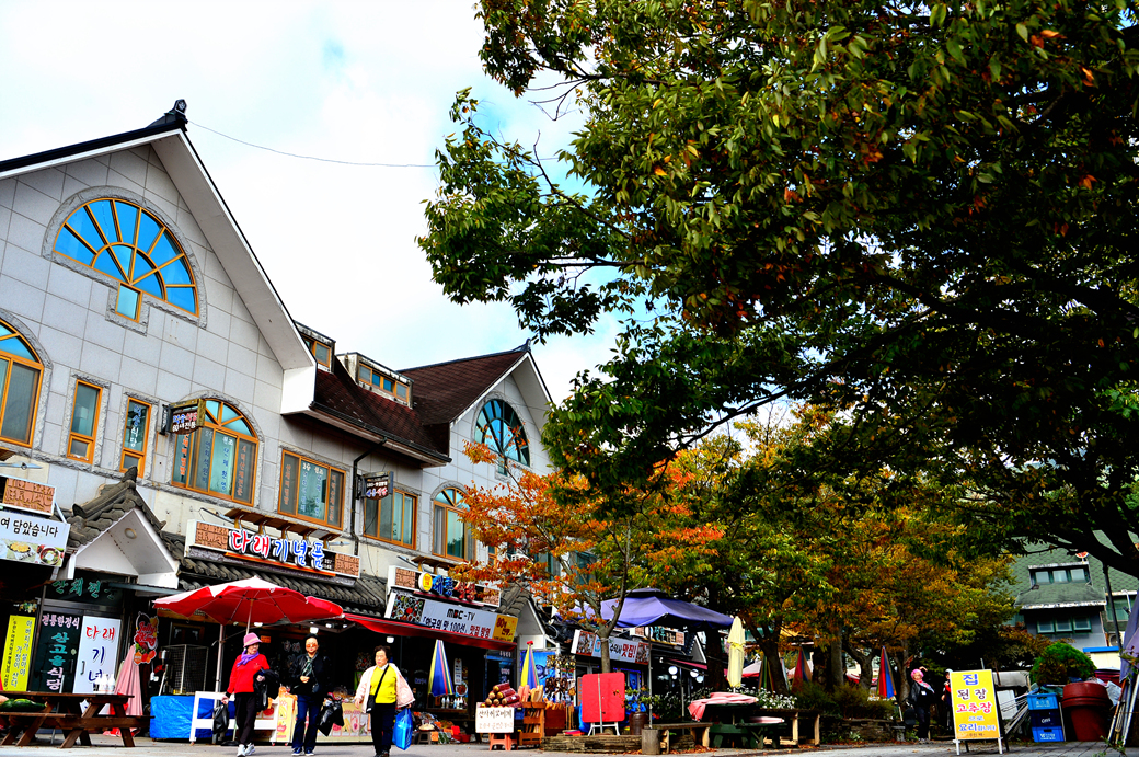 수덕사 입구의 가을 단풍과 어우러진 상가의 풍경들이 아름답게 다가온다.