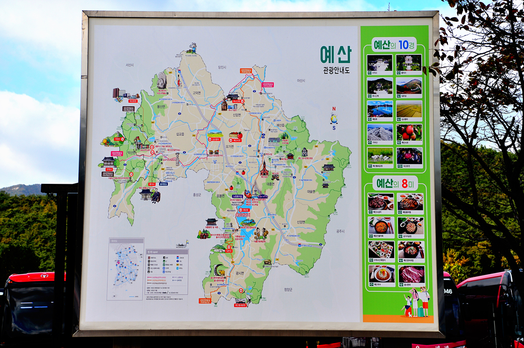 수덕사 주차장의 예산 관광안내도부터 살펴본다.
