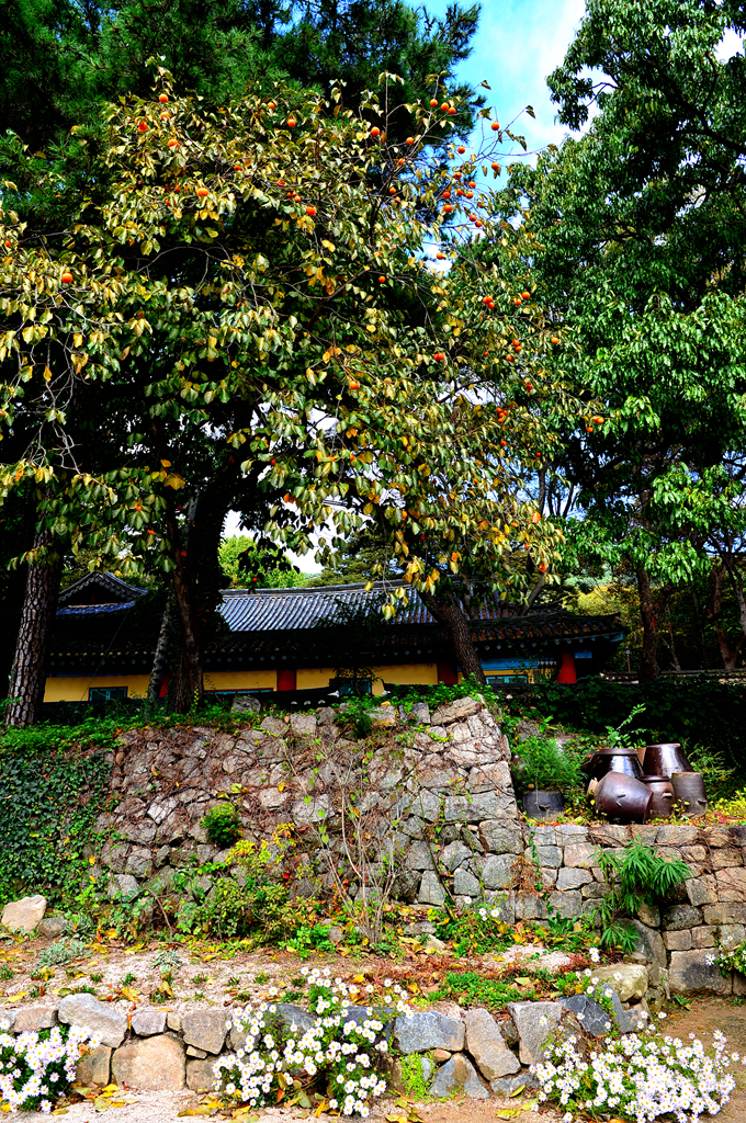 고택 옆의 석축과 그 위의 감나무가 가을 정취를 대변해 주는 듯하다.