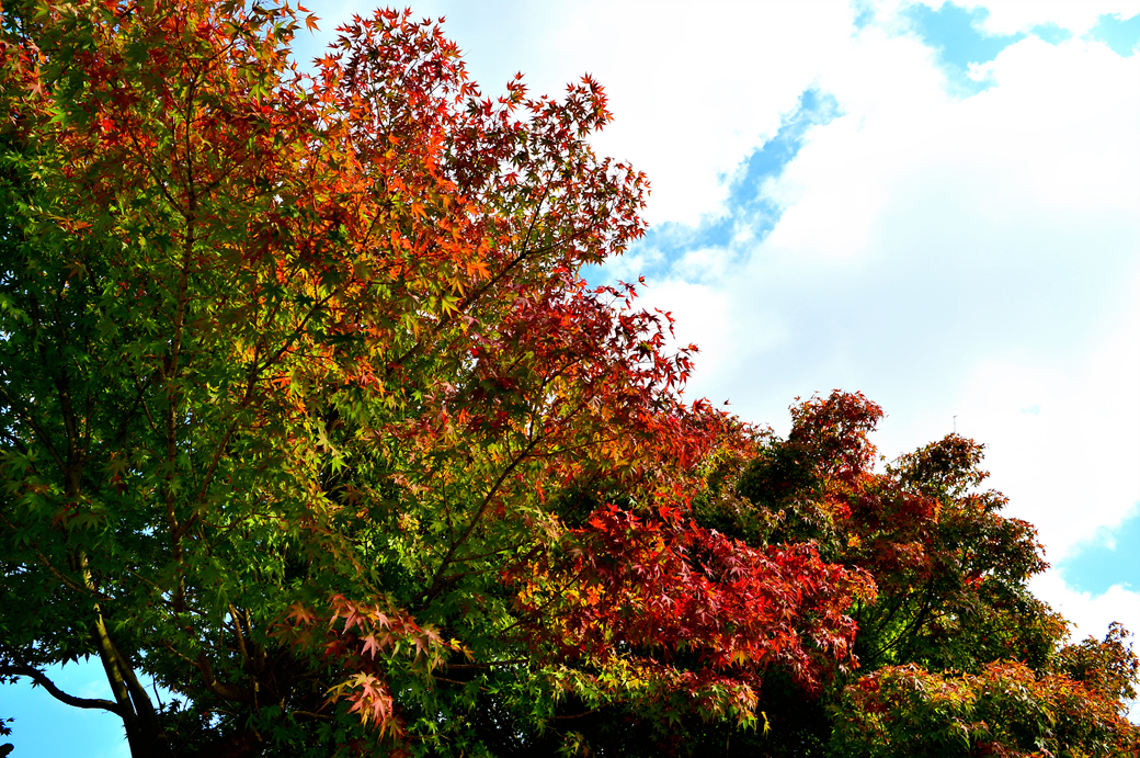아직 초록인 채로 매달려 있는 잎사귀 위로는 빨갛게 물든 단풍이 제법 그 세력을 확장하고 있는 모양새다.