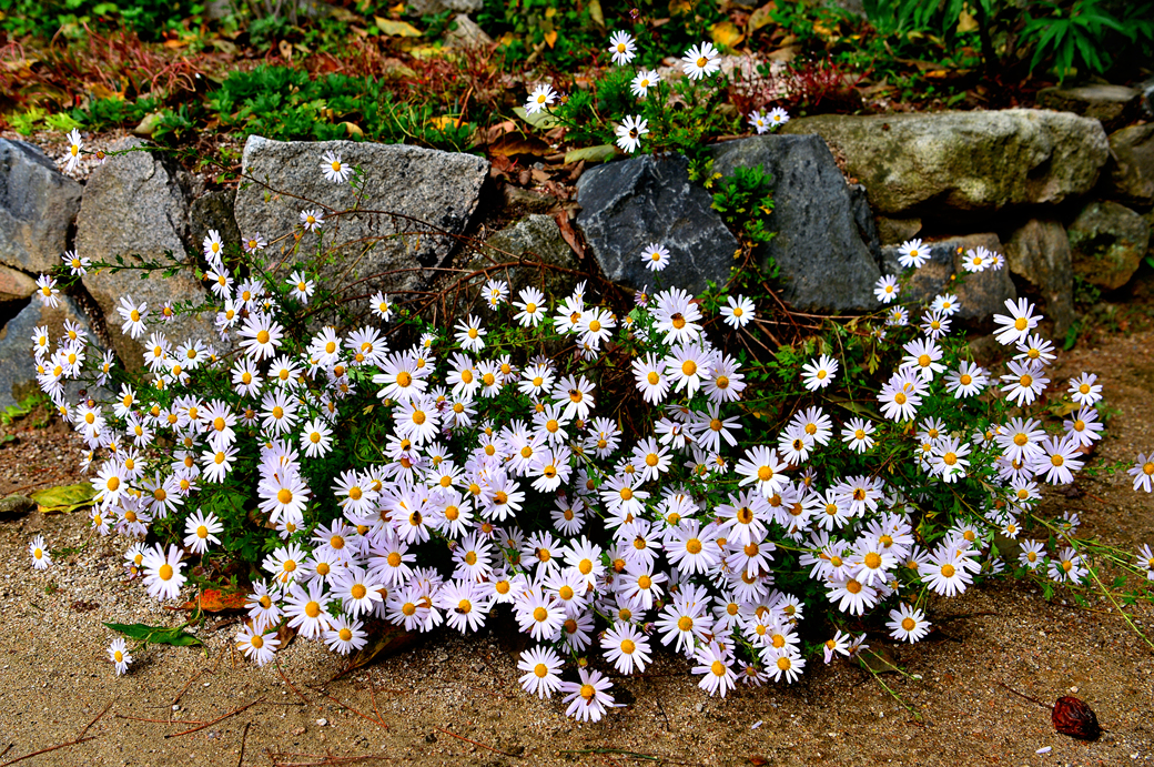 돌담 아래의 하얀 꽃도 아름답기만 하다.