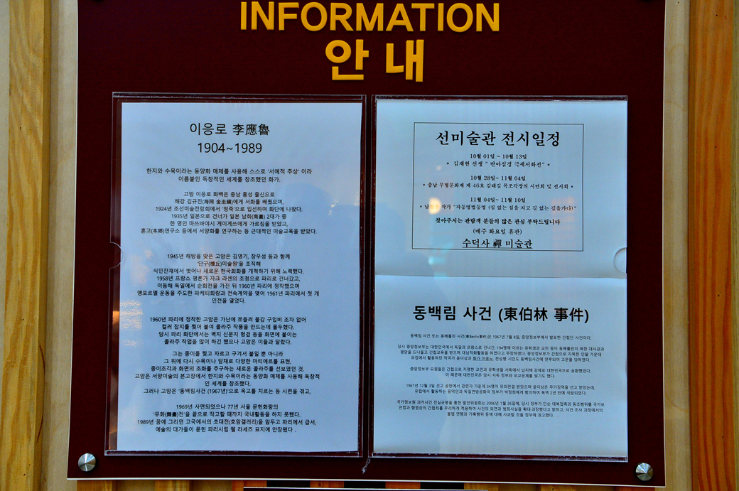 미술관 안으로 들어서니 이응로 화백에 대한 안내와 함께 전시실이 마련되어 있다.
