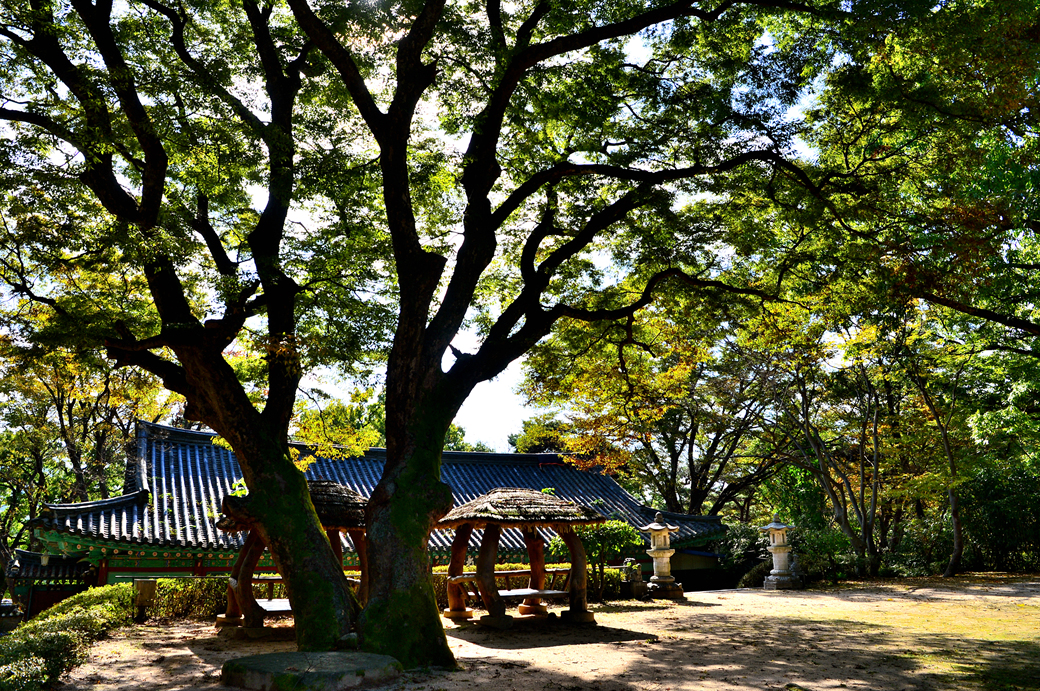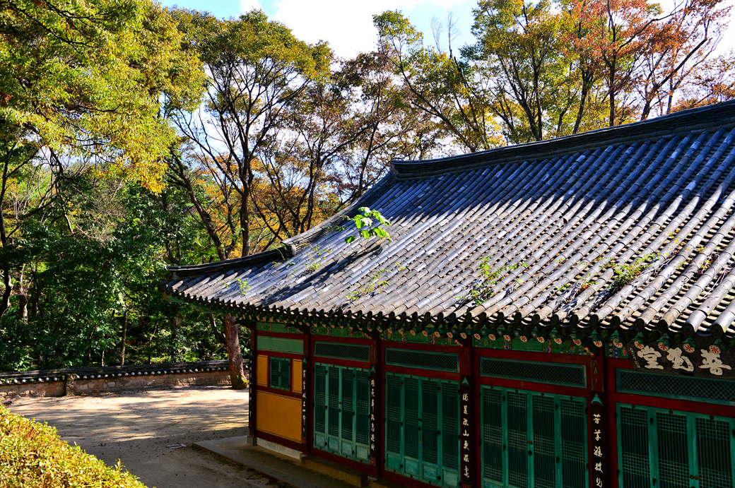 수목이 우거진 오른쪽 길 너머로 또 다른 전각이 보인다.