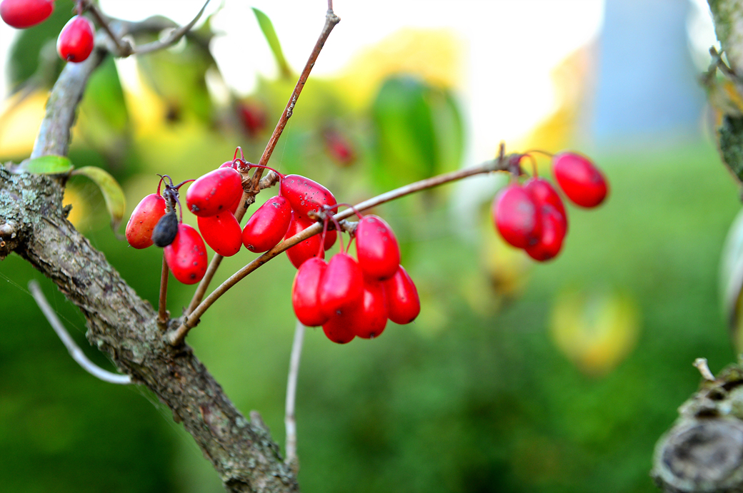기념관 옆의 빨간 산수유 열매가 아름답다.