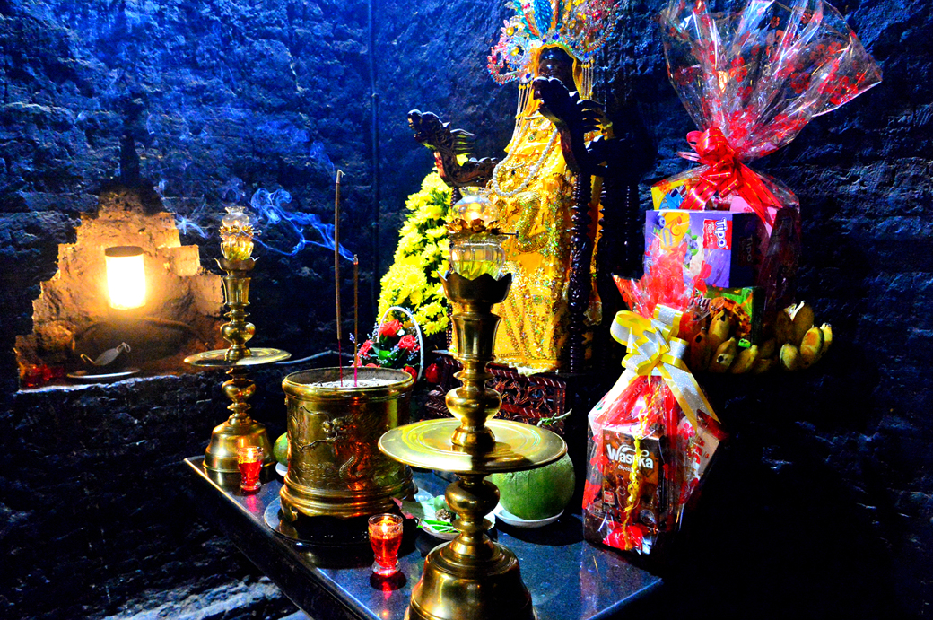 화려하게 치장한 제단 앞에는 시바 신의 상징인 링가가 모셔져 있다.
