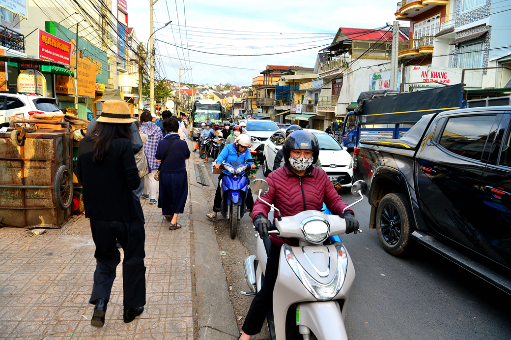 오토바이와 각종 차량들로 거리가 엄청 붐비고 있다.