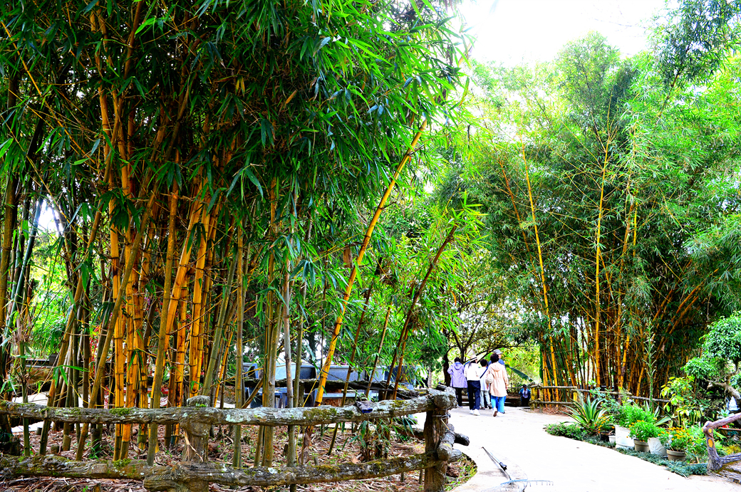 한 무리의 잘 가꿔진 대나무가 눈에 띈다.