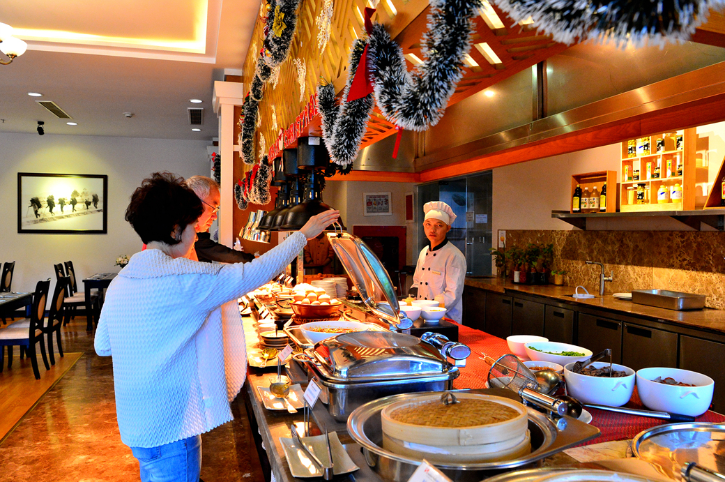 아침 식사를 하러 호텔 식당으로 들어선다.
