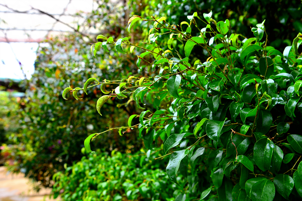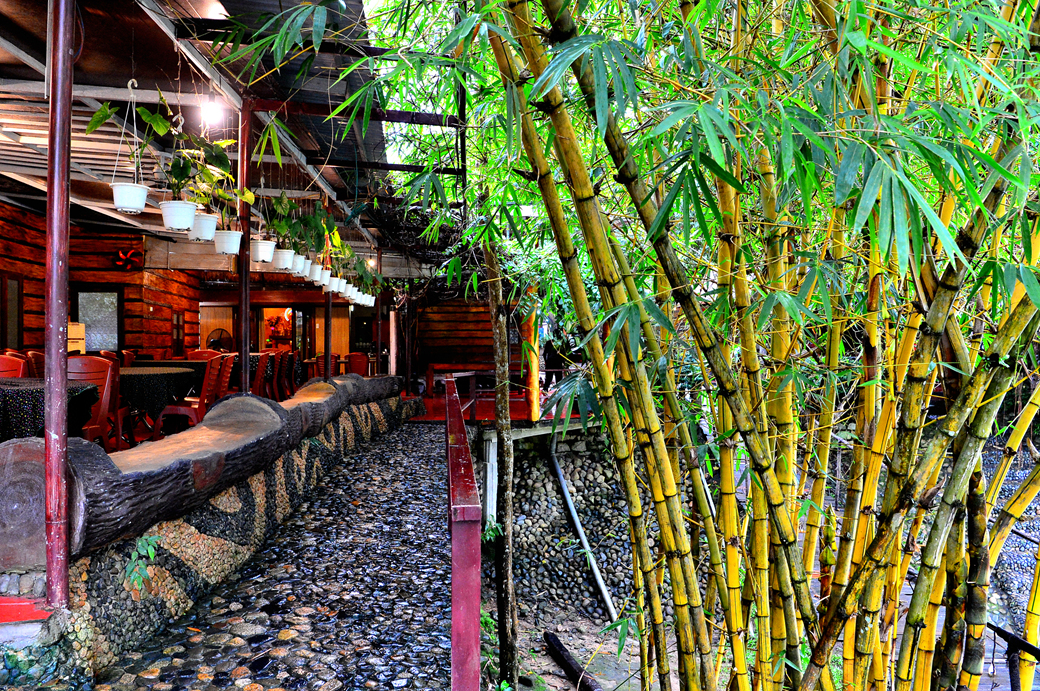 비에 젖은 대나무 숲이 운치 있다.