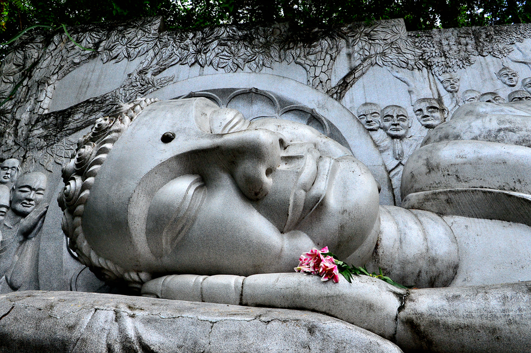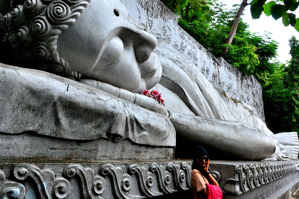 계단 중간에서 만난 와불상이다.