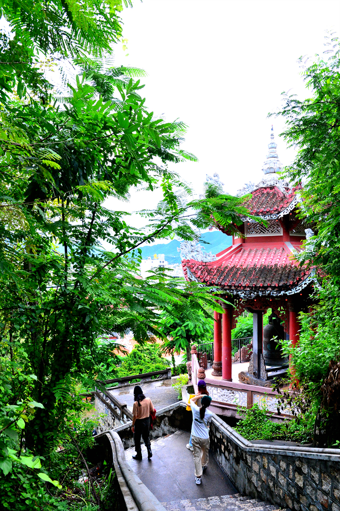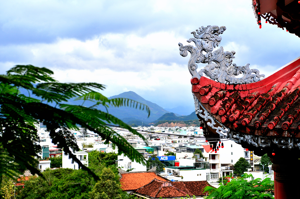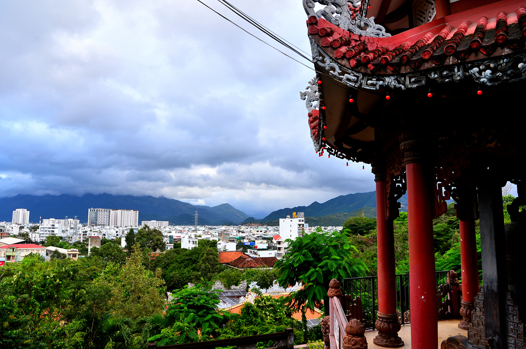 롱선사 천수관음상으로 오르는 계단에서 보이는 나트랑 시가지 모습이다.