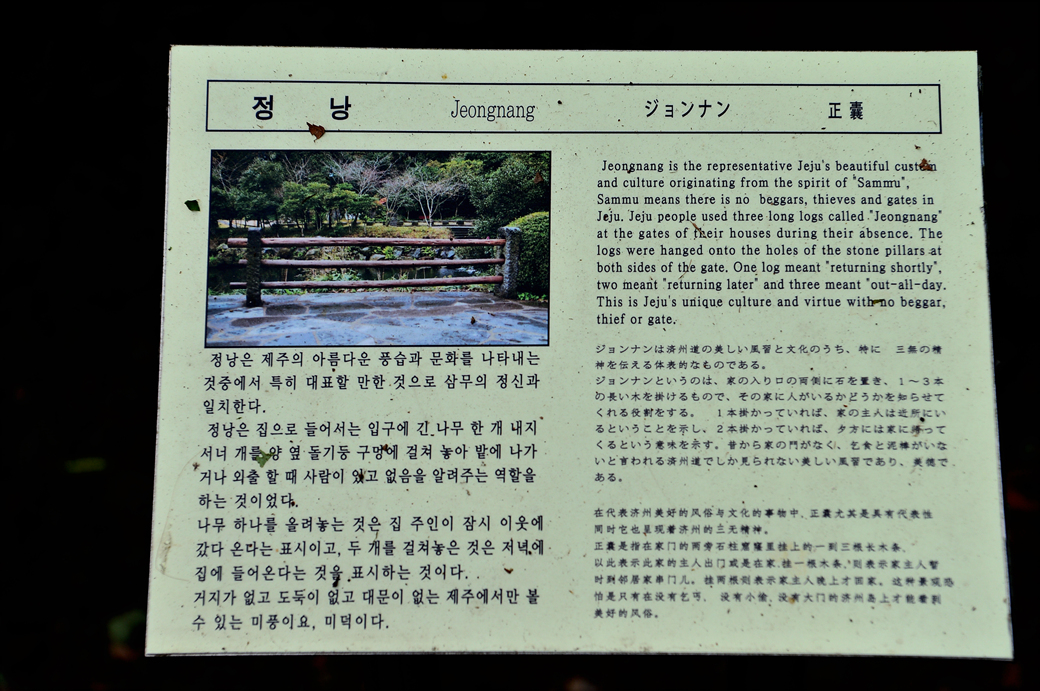 제주의 대문을 대신하는 독특한 정낭에 대한 안내문도 보인다.