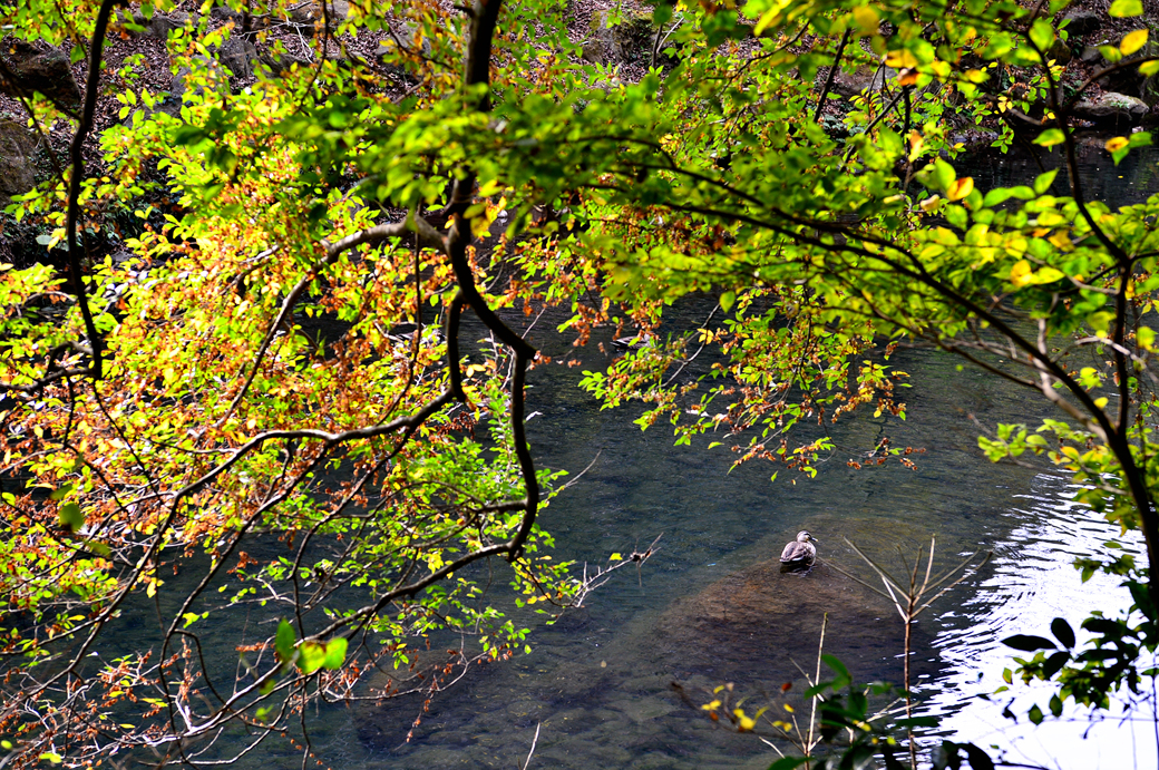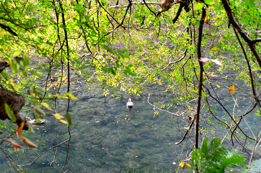 폭포 아래의 연못에서도 많은 오리들이 노닐고 있다.