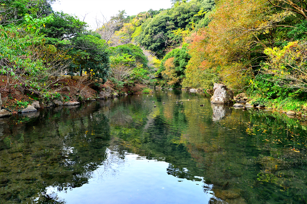 천지연 폭포가 만들어 낸 계곡의 아름다운 풍경이다.