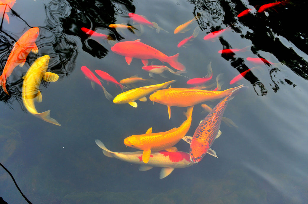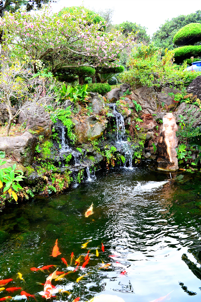 작은 폭포수 아래 색색의 물고기들이 눈에 들어온다.