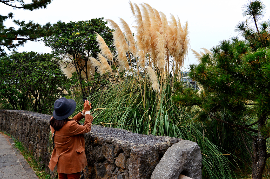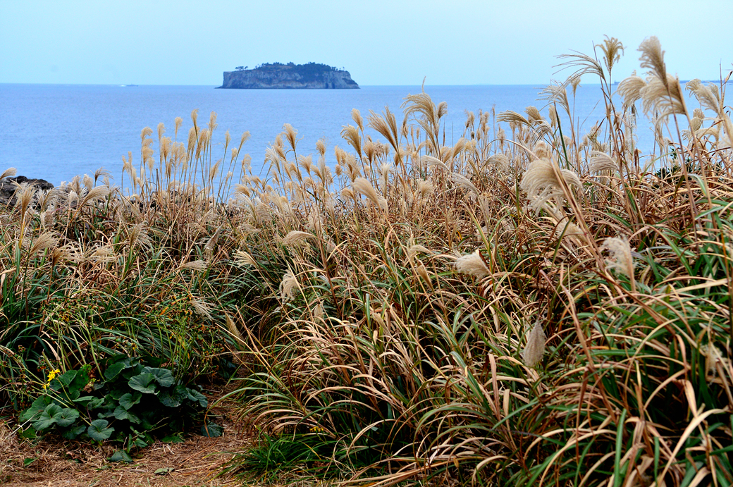 해변의 숲이 끝나는 지점에서는 아름다운 억새가 그 모습을 드러낸다.