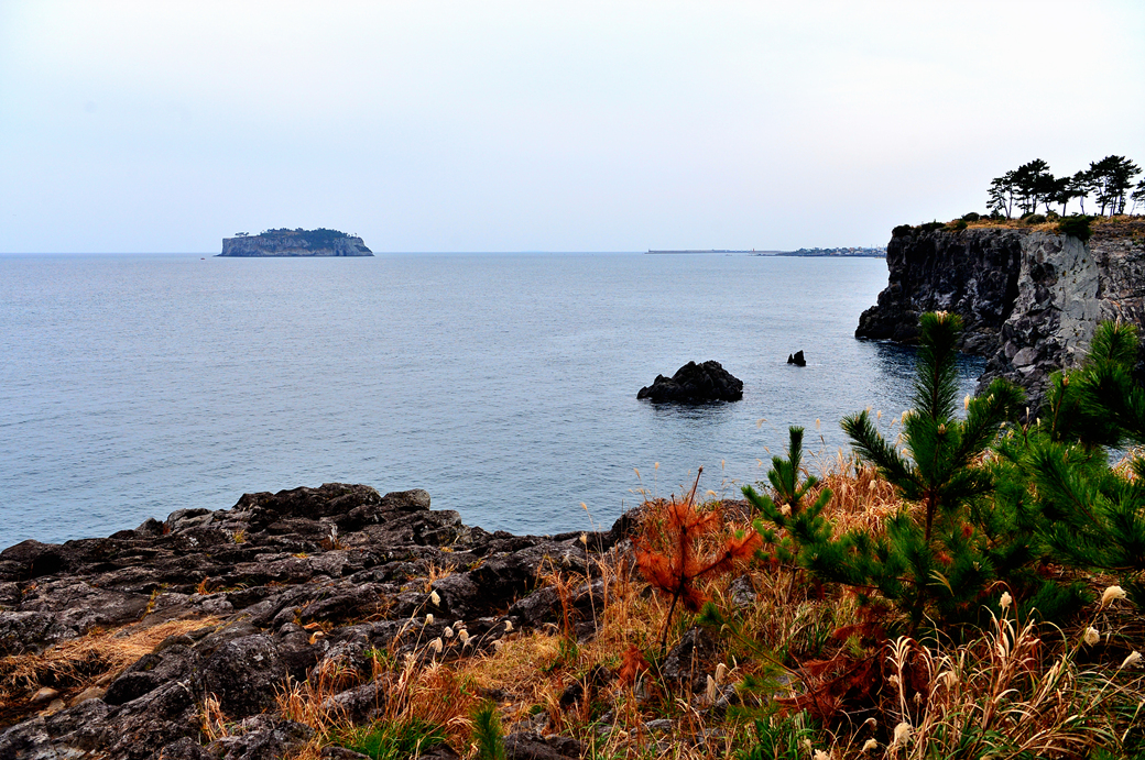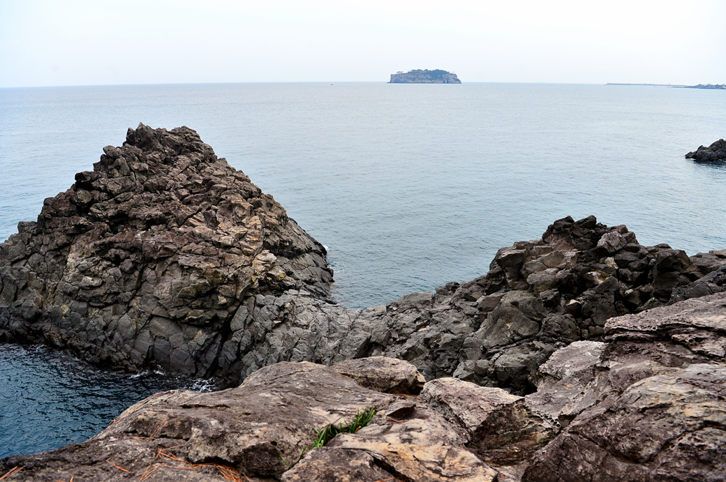 바닷가 암석 위에서 본 문섬 모습이다.