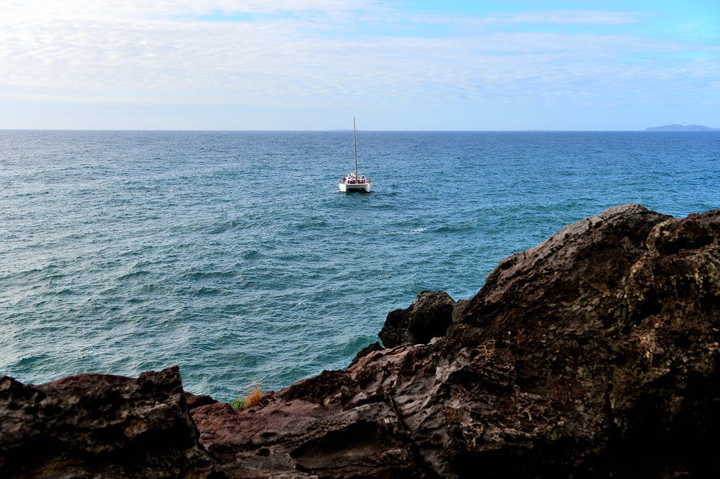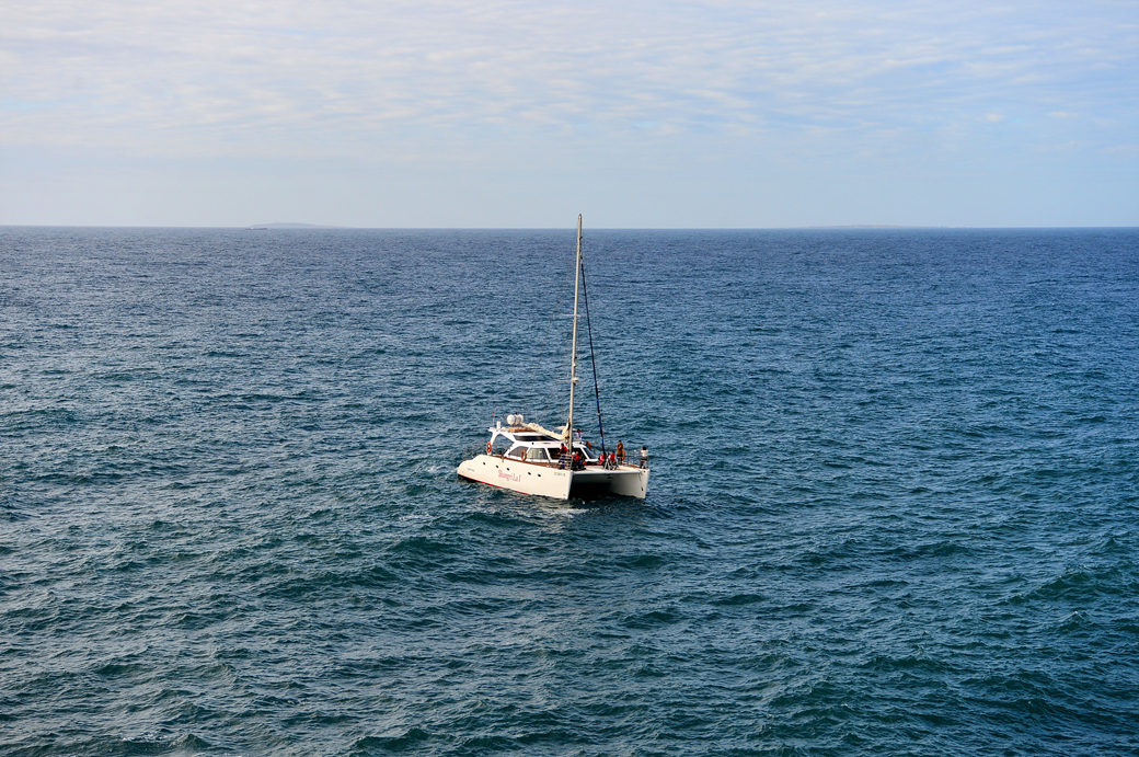 주상 절리대를 구경하기 위한 보트도 떠 있다.