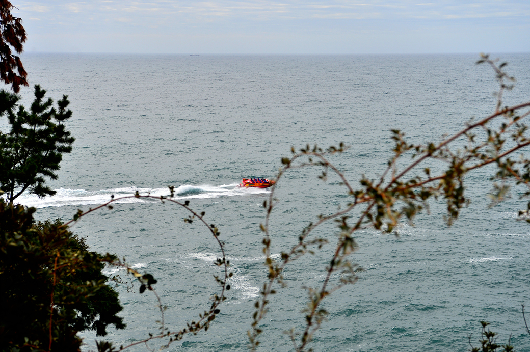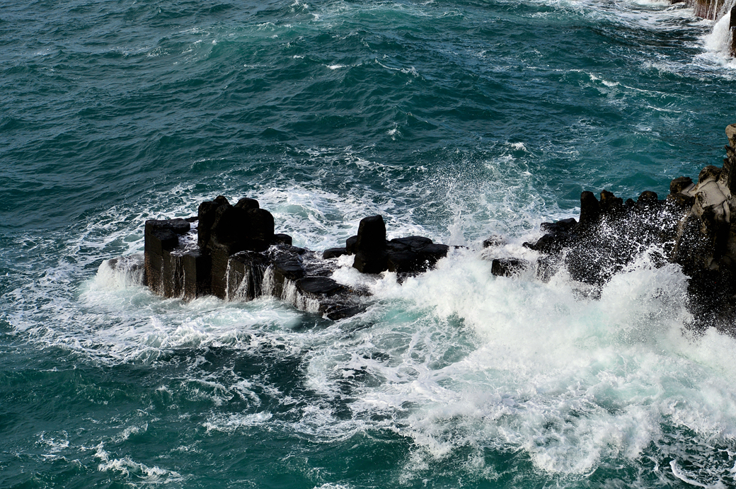 거친 파도를 마주하고 있는 대포 주상 절리대의 아름다운 풍경이다.