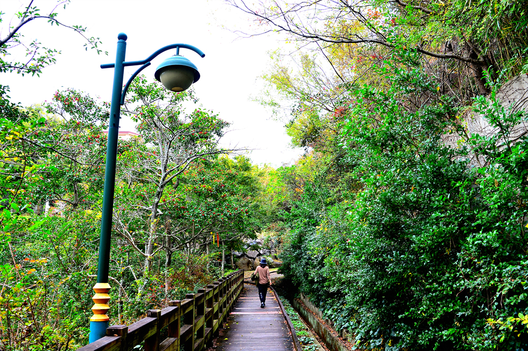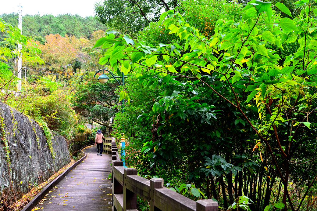 울창한 산림 사이로 이어지는 산책로가 아름답다.