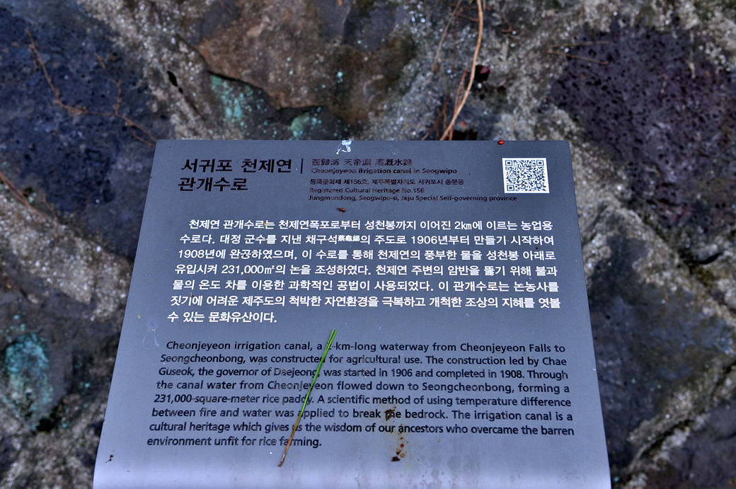 천제연 폭포에서부터 성천봉까지 이어진 2km에 이르는 농업용 수로란다.