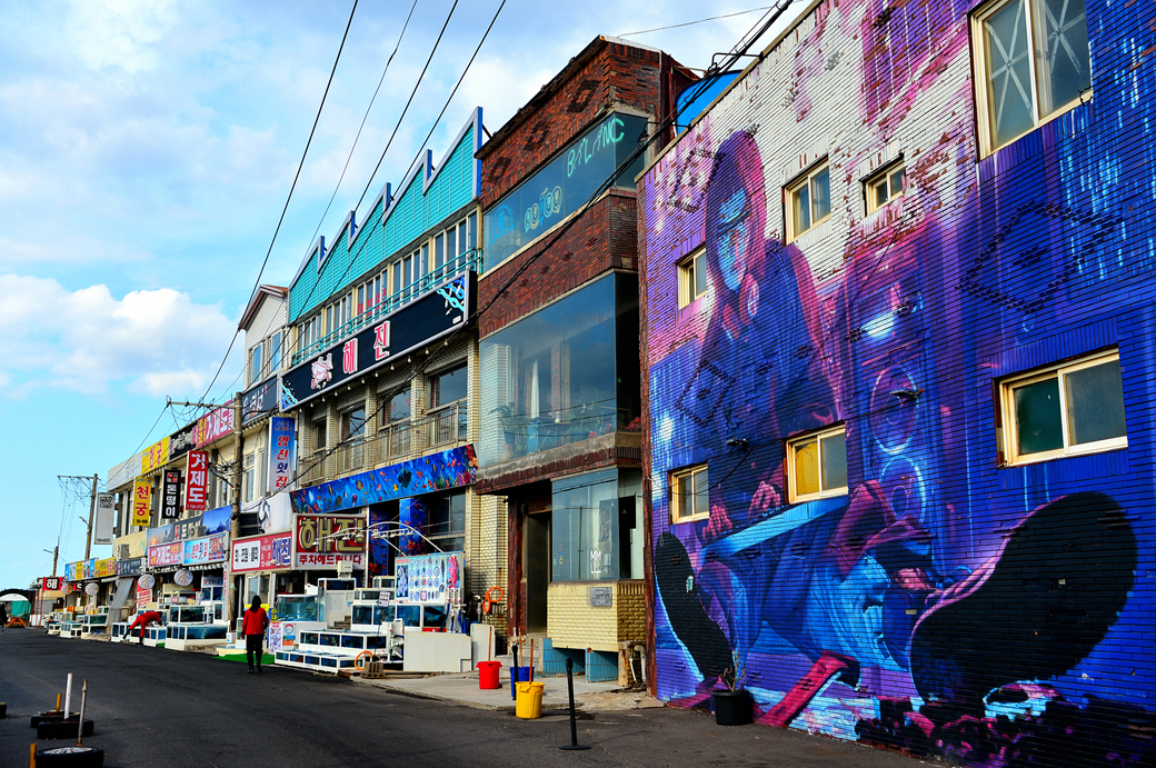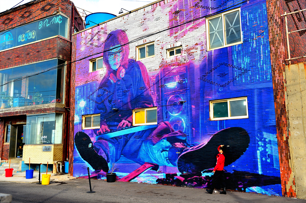 산책로 끝에서 만난 건물에 그려진 벽화가 무척 인상적이다.