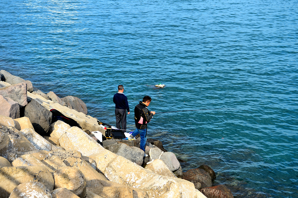 방파제 아래의 낚시꾼들 모습이다.