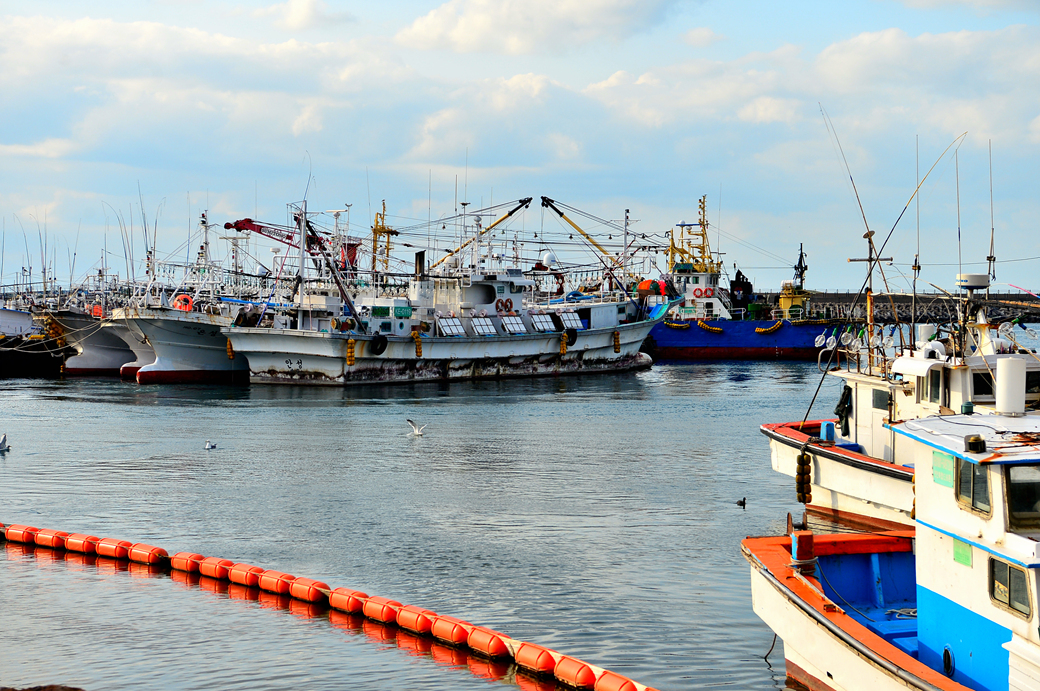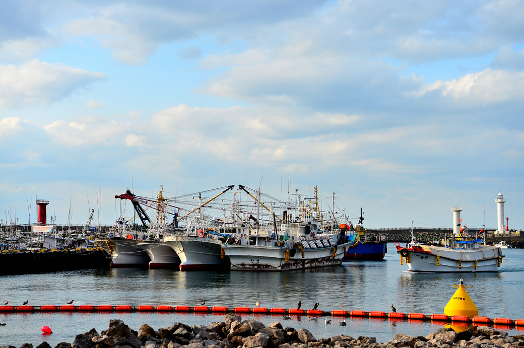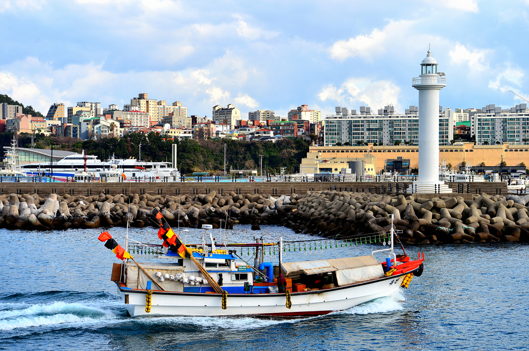 항구로 들어오는 어선이 아름다운 풍경을 자아낸다.