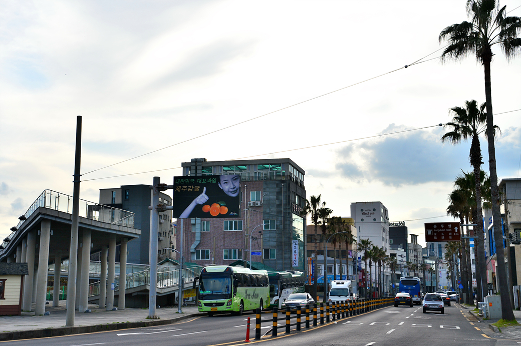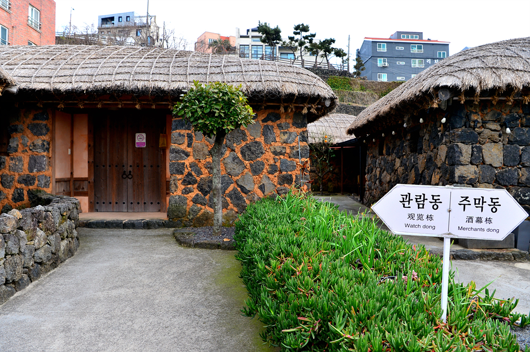 도로 건너편에서 김만덕 객주라는 제주 전통 가옥들이 보인다.