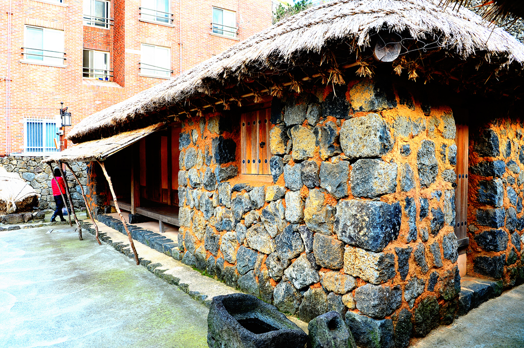 화산석을 정교하게 쌓아 올린 제주 전통 가옥이 멋지다.