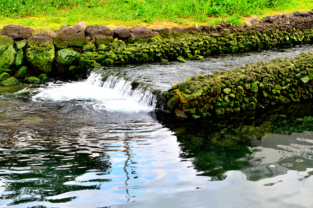 이끼 낀 돌 사이를 흐르는 물길이 시원스럽다.