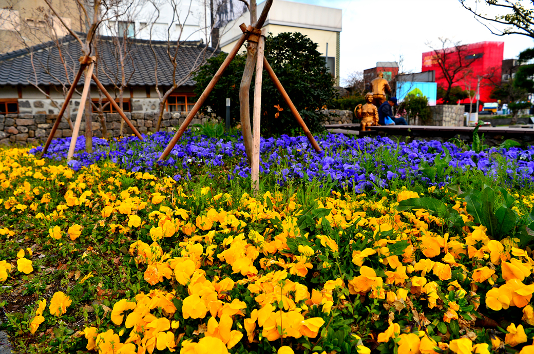 산지천 옆 공원에 조성해 놓은 아름다운 꽃밭이다.