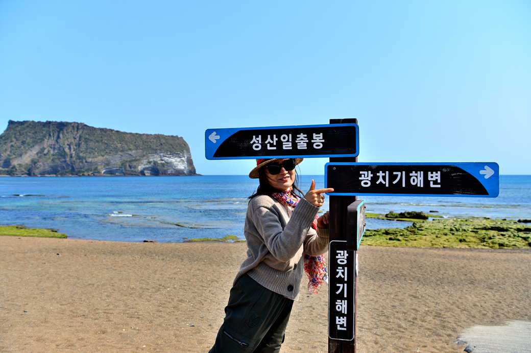 광치기 해변 표지판에서도 기념사진을 한 장 남기고~