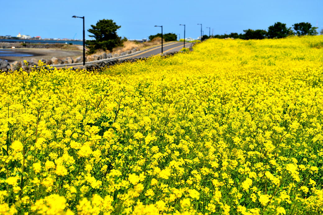 그동안 다른 곳에서도 유채꽃을 본 적은 있지만 왠지 유채꽃은 제주에서 보아야만 제격일 거라는 생각이 들었었는데,