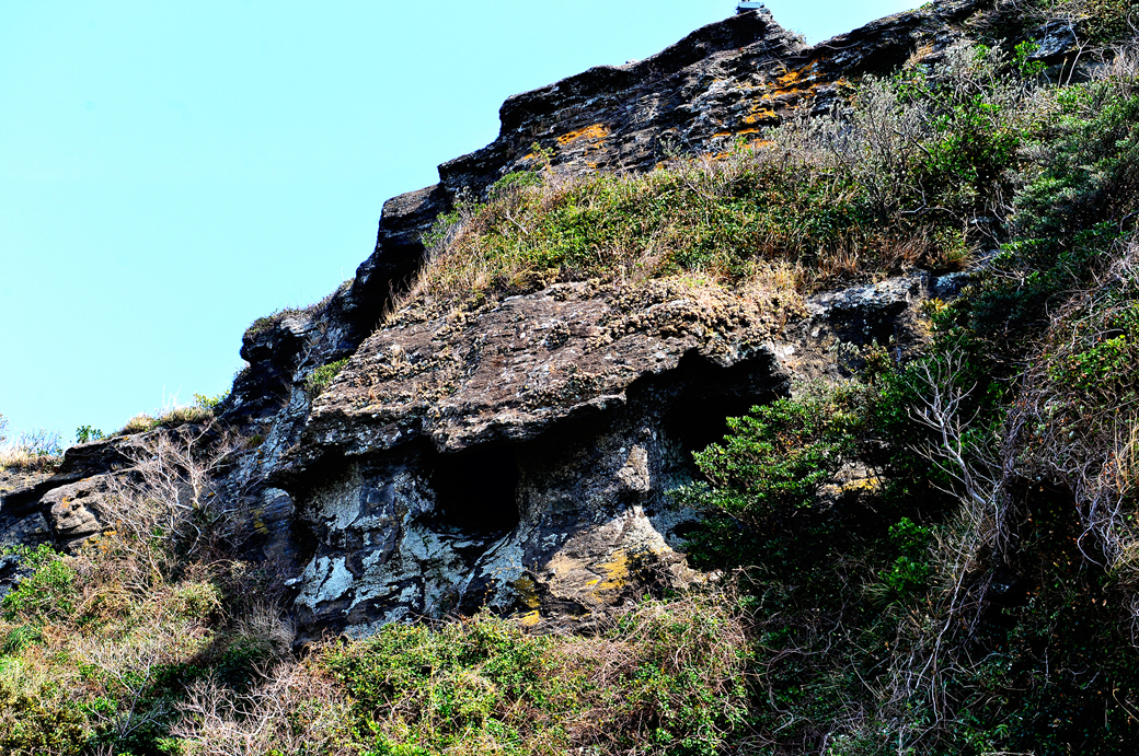 오름길 옆으로 보이는 일출봉의 바위들 형상이 기기묘묘하다.