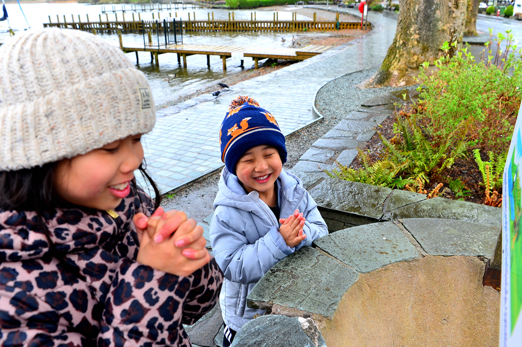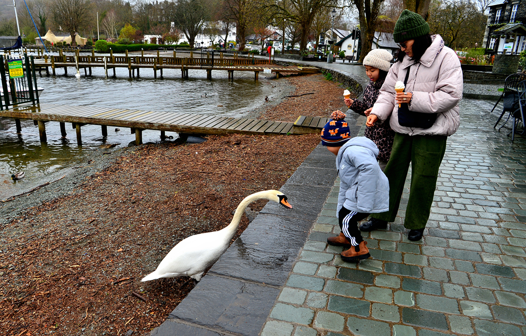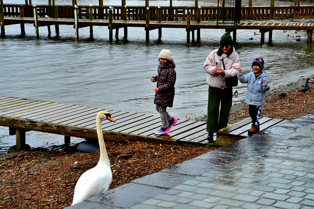 아이들은 백조와의 만남이 무척 마음에 드는 모양이다.
