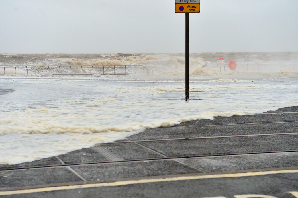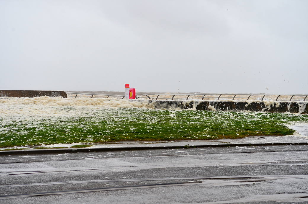하얀 포말까지 일으키며 방파제를 넘는 파도의 위세가 실로 대단하다.