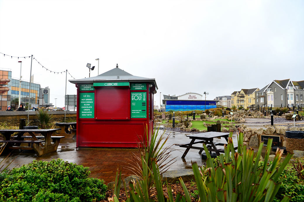 궂은 날씨에 야외 놀이장은 모두 폐쇄되어 있다.