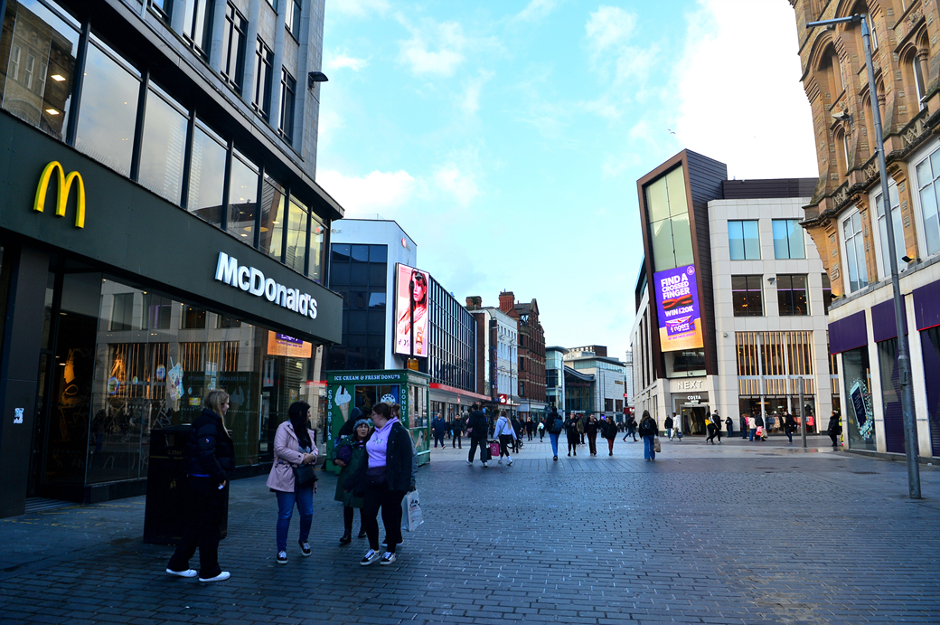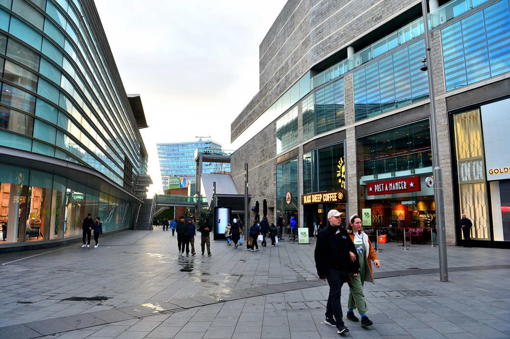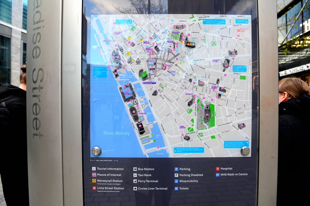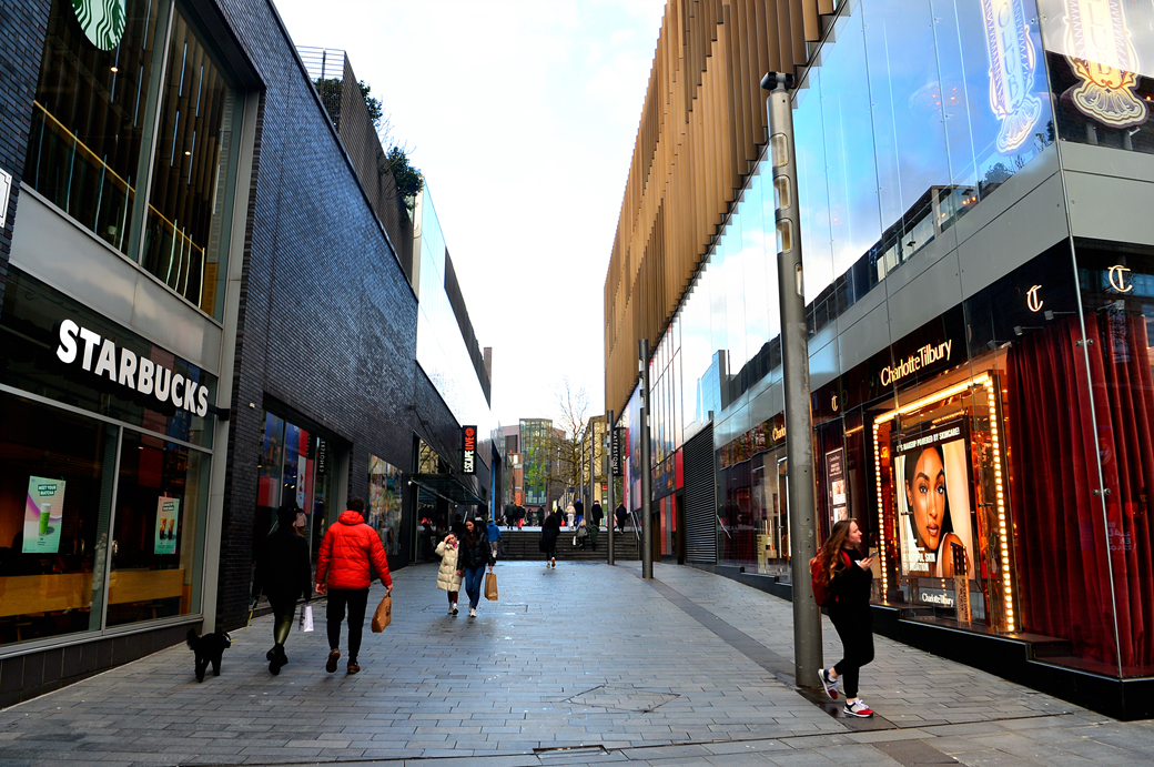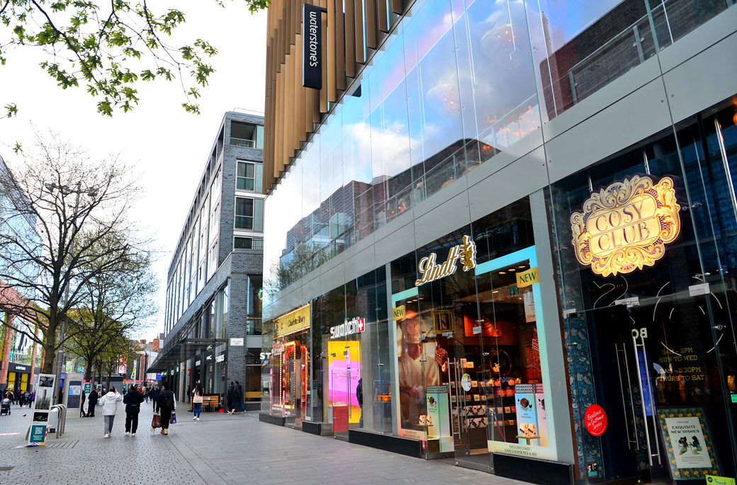 거리의 깔끔한 현대식 상가들이 활기차게 생동하고 있는 리버풀의 저력을 보여주는 듯하다.