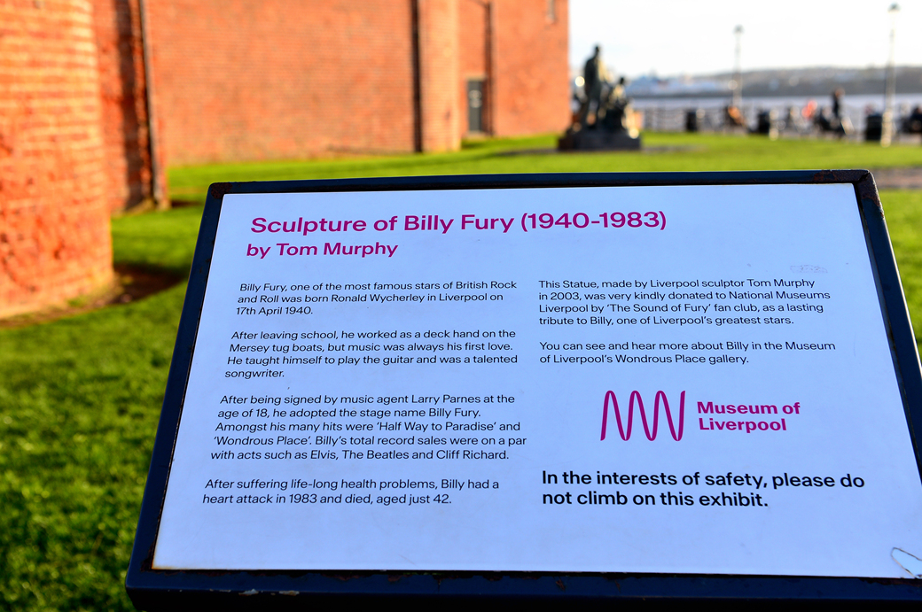 이 동상의 주인공 빌리 푸리는 영국 록 앤 롤의 가장 유명한 스타 중 한 명으로, 1940년 4월 17일 리버풀에서 태어