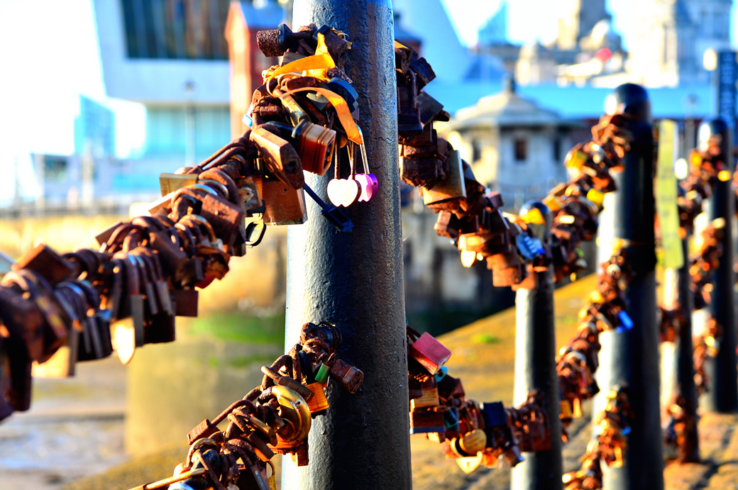 항구 난간의 철기둥에도 많은 자물쇠들이 걸려 있다.