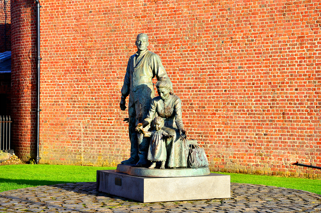 이 젊은 가족 조각상은 리버풀에서의 이주를 기념하기 위해 만들어졌다고 한다.