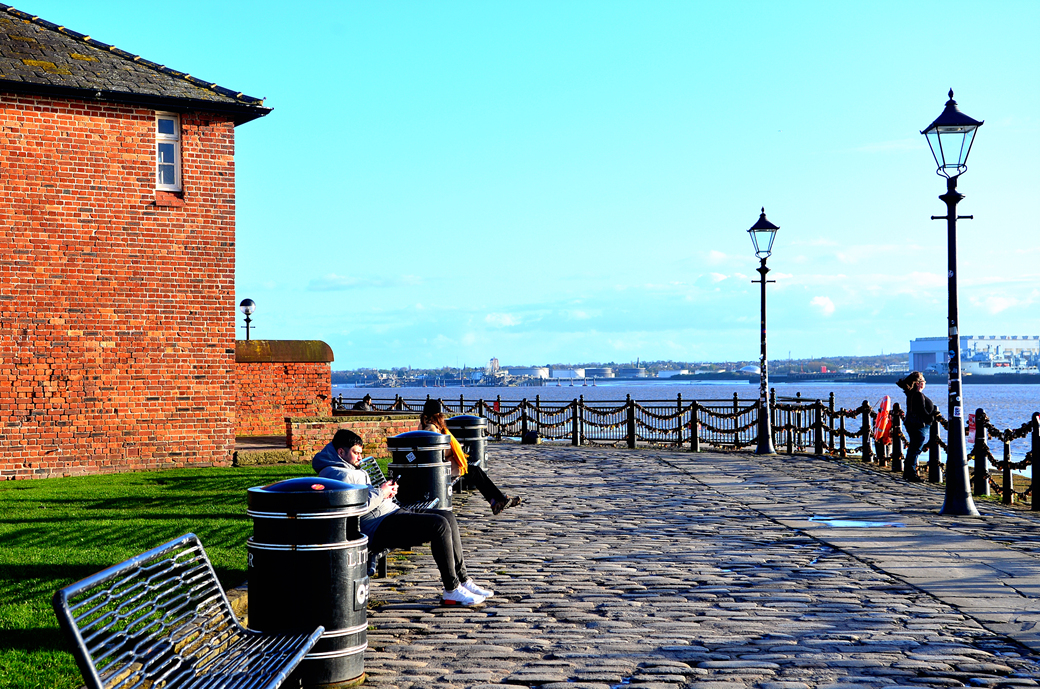 도시 중심가와 리버풀 항구를 가르는 대로를 건너서 리버풀 항구로 들어선다.